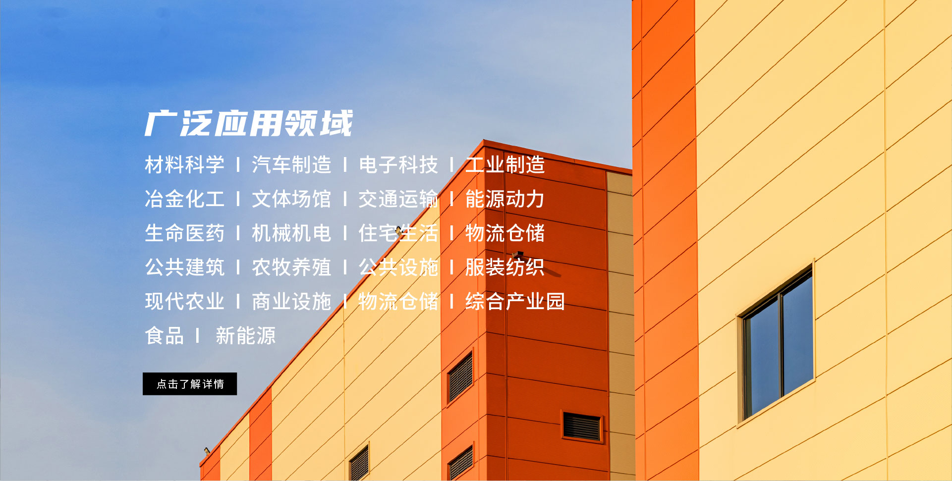 汽車制造 電子科技 綜合產業園 冶金化工 文體場館 交通運輸 能源動力 生命醫(yī)藥 機械機電